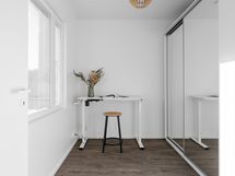 Kodissa on myös erinomainen mahdollisuus erilliseen työ- tai yritystilaan, tai esimerkiksi vanhemman lapsen omaan rauhaan. Kahden huoneen yhteydessä oleva oma sisäänkäynti tuo yksityisyyttä ja monikäyttöisyyttä, näissä tiloissa on myös oma erillinen wc. Myyjä voi tarpeen vaatiessa muokata väliseiniä ja tehdä kulkuaukon ostajan toiveiden mukaisesti – ulkoseinät ovat kantavia rakenteita, mikä mahdollistaa sisätilojen joustavan muokkaamisen.