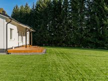 Etupihalla on autokatos sekä varastotila. Pihapiiri on viimeistelty ja hyvinhoidettu, talon molemmilta puolin löytyy iso terassi.