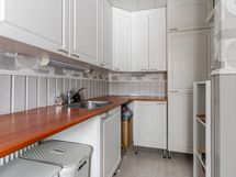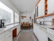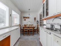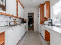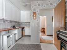 - Varusteet: jääkaappipakastin, astianpesukone. Työtaso: laminaattitaso. Liesi: sähköliesi, liesituuletin hormilla. Tämä valoisassa keittiössä on v. 2011 uusitut kaapistot ja tasot. Runsaat kaapisto ja tasotilat helpottavat arkea ja vieressä on ruokailutila, johon mahtuu isompikin pöytä. Ruokailutila on yhteydessä olohuoneen kanssa.