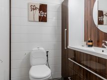 - Varusteet: suihku, pesukoneliitäntä. Isokoinen kylpyhuone, jossa laatoitetut pinnat, vesikiertoinen lattialämmitys ja pesukoneliitäntä. Huoneessa on ikkuna. WC: Tilava wc, jossa v. 2011 uusitut pinnat, allaskaapisto, peili, wc-istuin ja paneeloidut seinät ja katto.