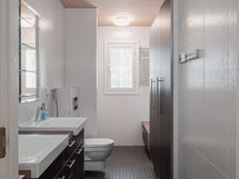 Suihku, Pesukoneliitäntä, Vesikiertoinen lattialämmitys, Tilaa pesukoneelle, Kaapisto, Allas, WC-istuin