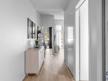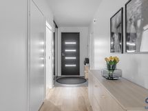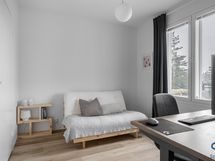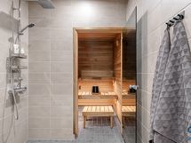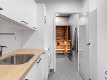toisessa makuuhuoneessa on vielä oma vaatehuone, josta löytyy paljon arvokasta säilytystilaa. Perheen arkiaskareita helpottaa tilava kodinhoitohuone, jossa on runsaasti kaapistoja sekä paikka pesutornille. Kylpyhuoneessa on kaksi sadesuihkua, jotka tuovat ripauksen luksusta arkeen ja oman saunan löylyissä on mukava rentoutua päivän päätteeksi.