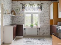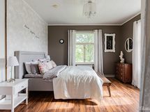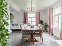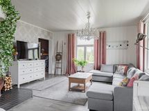 Talon runko on piilossa, mutta sen voima tuntuu joka huoneessa. Sisätiloissa on korkeaa huonetilaa ja valoisat huoneet antavat kodille avaran ja ilmavan tunnelman. Alakerta on vuosien varrella laitettu hyvällä maulla — täältä löydät valmiit ja toimivat tilat sujuvaan arkeen ja viihtyisään oleskeluun. Yläkerrassa on puolestaan tilaisuus päästää oma sisäinen sisustaja valloilleen: siellä kaivataan pintaremonttia, jonka myötä talon persoonallinen ilme pääsee entistä paremmin esiin.