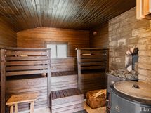 Saunomisesta ei tarvitse tinkiä. Talon sisällä on sähkösauna, joka tarjoaa arjen helppoutta. Ja kun kaipaat aitoa tunnelmaa ja hiljaista hetkeä, pihapiirin aittarakennuksessa odottaa perinteinen puulämmitteinen sauna — paikka, jossa arjen kiireet saavat jäädä löylyjen taakse.
