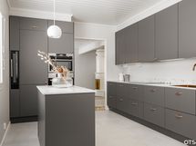 - Keittiön varusteet: Jääkaappipakastin, viinikaappi, liesituuletin, liesi, erillisuuni, mikroaaltouuni, astianpesukone ja keittiösaareke (Liikuteltava). Liesi: Induktioliesi. Työtason materiaali: Kivi. Puuseppä Pekka Nurmi tehnyt kalusteet.