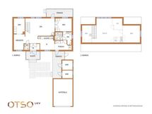 - Yläkerrassa 60m2 valmius lisätilalle.