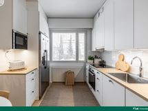 - jääkaappi/pakastin (jääpalakone epäkunnossa), liesituuletin (suodatin), erillisuuni ja induktioliesitaso, integroitu mikro, integroitu astianpesukone