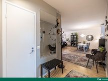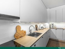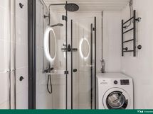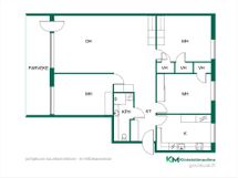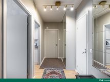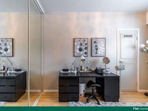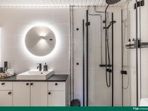 - Kylpyhuone, suihku, taitettavat suihkuovet, peilit, lattialämmitys, kylpyhuonekaapisto, kiinteät valaisimet, pesukoneliitäntä, vesikiertoinen rättipatteri