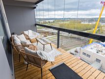 - Lasitettu isokokoinen 16 neliön parveke etelään päin.