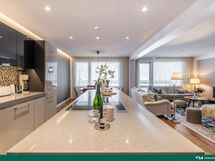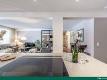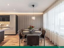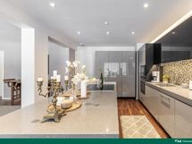- Jääkaappi/pakastin, erillisuuni- ja liesitaso (induktio), liesituuletin (pöytään upotettu), mikroaaltouuni, astianpesukone, kaapistot (JSP-keittiöt), kivitasot (kvartsi starlight gray)