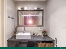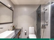 - Kylpyhuone, suihku, peilit, kiinteät valaisimet, kylpyhuonekaapisto, lattialämmitys, pesukoneliitäntä (mh:ssa)