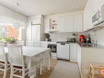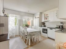 - Jääkaappipakastin, lattialiesi, keraaminen liesi hankittu 3-2025, liesituuletin, astianpesukone, kaapistot, kiinteät valaisimet.