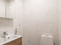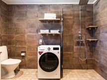 Pesutilojen varusteet: WC-istuin, suihku, suihkuseinä, pesukoneliitäntä, lattialämmitys ja pesuallas. Erillisten WC:n lukumäärä: 1. Erillisen WC:n varusteet: WC-istuin, pesuallas ja peilikaappi.