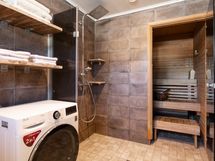Asunnossa on kolme makuuhuonetta, tilava olohuone, moderni keittiö saarekkeella sekä erillinen harrastetila, joka tarjoaa monipuoliset mahdollisuudet esimerkiksi työhuoneeksi tai vierashuoneeksi. Kylpyhuoneessa on lattialämmitys ja sauna tarjoaa rentouttavat löylyt pitkän päivän päätteeksi.
