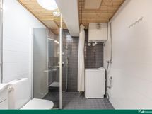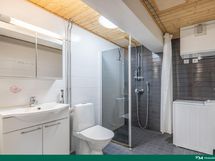 - Kylpyhuone, suihku, suihkuseinä, allaskaapisto, peilikaappi, pesukoneliitäntä, lattialämmitys, kiinteät valaisimet