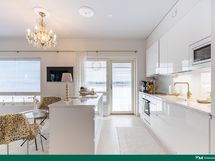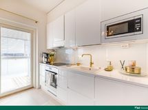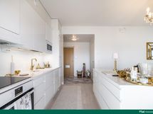 - Kaapistot, kivitasot, komposiittiallas, induktioliesitaso, erillisuuni, liesituuletin, mikro integroitu, jääkaappi/pakastin (integroitu). Saareke (kivitaso).