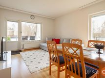 Tämä kaunis kerrostalokoti sijaitsee toisessa asuinkerroksessa ja sieltä avautuvat näkymät itään ja olohuoneessa on ikkunoita kahteen suuntaan. Asunto on pidetty hyvässä kunnossa, ja siinä on kaunis tammiparketti. Avarassa olohuone-keittiöyhdistelmässä on runsaasti valoa ja tilaa. Lisäksi asunnossa on oma sauna.