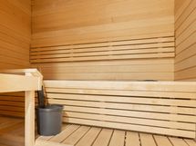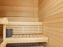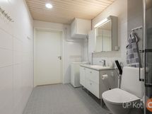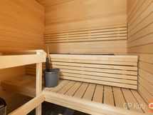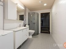 - Sauna, sähkökiuas, kylpyhuone, suihku, peilikaappi, allaskaappi, pesukoneliitäntä, lattialämmitys, kiinteät valaisimet.