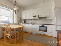 - Jääkaappipakastin, erillisuuni, liesitaso, liesituuletin, astianpesukone, kaapistot, kiinteät valaisimet.