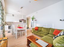 Keittiön varusteet: Astianpesukone, jääkaappipakastin, mikroaaltouuni, liesituuletin ja erillisuuni. Liesi: Keraaminen liesi ja erillisuuni. Työtason materiaali: Laminaatti.