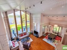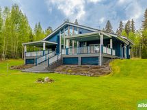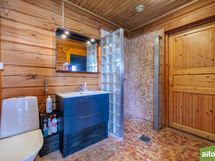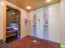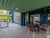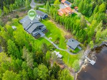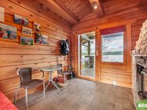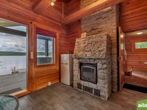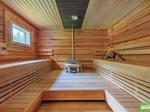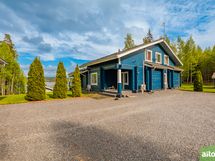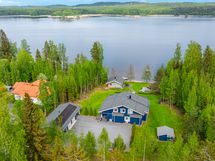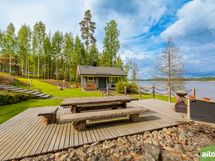 The 5,000 m² plot is privately owned and opens gently toward the water. The private shoreline provides ideal access for swimming, boating, and enjoying the peaceful surroundings of Saimaa. A separate lakeside sauna (approx. 29 m²) and a garage building with space for two cars and ample storage (approx. 109 m²) complete the functional and attractive courtyard.