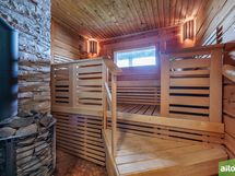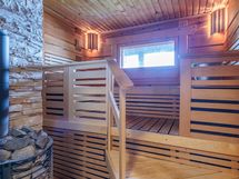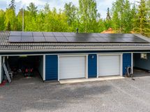 Pihapiiriä täydentävät hirsirakenteinen rantasauna (n. 29 m²) sekä kahden auton autotalli, katos ja varasto (yht. n. 109 m²), jotka tarjoavat toimivat tilat arkeen ja harrastuksiin. Kokonaissähkönkulutus on erittäin maltillinen, noin 17 500 kWh vuodessa.