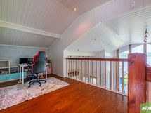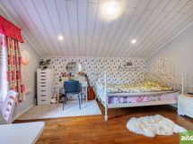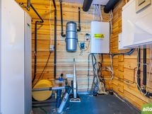 Lämmitys hoituu maalämpöön liitetyllä vesikiertoisella lattialämmityksellä. Varaavalla takalla ja sähköllä saadaan lisälämpöä kylmimpiin hetkiin. Viilennystä tuo ilmalämpöpumppu. Kodin pohjaratkaisu on puolitoistakerroksinen – alakerrassa kaksi makuuhuonetta ja yläkerrassa kaksi lisää.