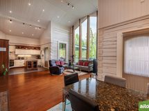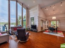 Welcome to this distinguished log home on the shores of Lake Saimaa in the peaceful and scenic Kyyhkylä area, just minutes from Mikkeli city centre. Completed in 2013, this well-designed house offers 200 m² of living space and 240 m² of total area, including five rooms, a kitchen, bathroom, three WCs, utility room and private sauna. The spacious living room features large panoramic windows facing the lake, seamlessly connecting to a covered terrace that invites year-round enjoyment of the outdoors.