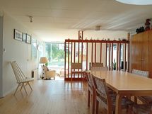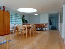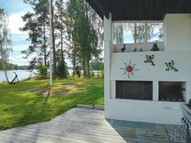 Omakotitalo järven rannalla keskustassa, monen haaveissa... Saimaan rannalta Ristiinasta tälläinen nyt löytyisi. Oma hieno hiekkaranta ja laituri, johon mahtuu isommallakin veneellä tai tähän kyllä pääsee parkkiin jo laivallakin. Upeat maisemat Saimaalle isoista ikkunoista, arkkitehtuuriltaan mielenkiintoinen talo kattojen valokuiluineen ja lisäksi rakennuksen jatkona on iso patio tulisijoineen. Moni Ristiinalainen muistaa tämän paikan, kun on käynyt aikoinaan hakemassa sivurakennuksesta ajoluvan tai viinakortin, nykyisin vanhasta nimismiehenkansliasta on tehty erillinen vuokrattava yksiö. Päätalon toisen sisäänkäynnin yhteydessä olevaan kahteen huoneeseen voisi perustaa vaikka bed and breakfast-tyyppistä majoitustoimintaa tai muuta erillistä työtilaa (oma wc ja keittiövaraus) ja lämpöeristettyyn erilliseen vierasmajaan mahtuisi vielä useampikin vieras lisää. Maalämmön avulla ison talon lämmityskulut ovat kurissa ja taloa on muutenkin remontoitu runsaasti vuosien varrella.