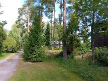 Nurmikko ja puistomainen piha