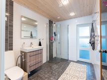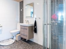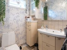 - Pesutilojen kuvaus: uusittu 2013. Varustus: suihkuseinä, lattialämmitys, wc-istuin, suihku, peilikaappi, kylpyhuonekaapisto. Erillisen WC:n kuvaus: pintaremontoitu hyväkuntoinen wc-tila, johon käynti eteisaulasta ja toinen wc sijaitsee saunaosaston pesuhuonetilassa.
