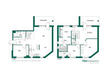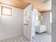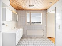 - Huoneistossa kaksi kylpyhuonetta. Alakerran kylpyhuoneessa wc-istuin, peilikaappi, allaskaappi, suihku, lattialämmitys. Yläkerran tilavassa kylpyhuoneessa kaksi suihkua, sähkösauna, lattialämmitys, kylpyhuonekaapistot, pesukoneliitäntä. Yläkerrassa lisäksi erillinen wc.