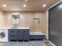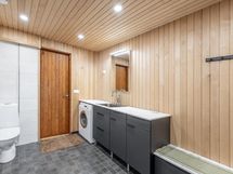 - Kylpyhuone, suihku, wc-istuin, kodinhoitohuonetaso, peili, pesukoneliitäntä, tilasta käynti ulos, vesikiertoinen lattialämmitys, sähkösauna. Tilat uusittu kokonaisuudessaan 2021. Erillinen wc jossa kylpyhuonekaapistot, wc- istuin, lattialämmitys. Wc remontoitu 2013.