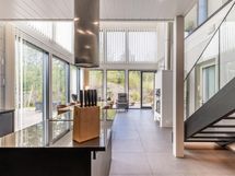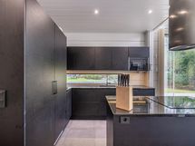- Jääkaappi, pakastin, induktioliesi, liesituuletin hormiin, astianpesukone (nouseva alakori), mikroaaltouuni, kalusteuuni (kiertoilmauuni), kivitasot, kiinteät työvalot. Kaikki kodin koneet integroitu.