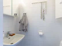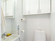 - Pesutilojen kuvaus: Kylpyhuone remontoitu 2008. Kylpyhuoneen yhteydessä kodinhoitopiste, jossa työtaso, pesukoneliitäntä ja rättipatteri. Varustus: suihkuseinä, pesukoneliitäntä, kiinteät valaisimet. Erillisen WC:n kuvaus: Molemmissa kerroksissa erillinen WC. Varustus molemmissa peilikaappi, kaapistot, bidee-suihku.