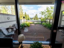 - Huoneiston ikkunat itään ja länteen. Terassilta ja parvekkeelta avautuu maisema Saimaalle itään päin.