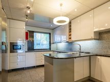- Keittiön varusteet: Jääkaappi, erillinen pakastin, liesituuletin, mikroaaltouuni, astianpesukone, liesi ja erillisuuni. Työtason materiaali: Kivi. Keittiö uusittu 2008.