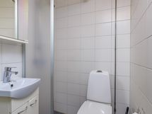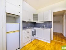 Yksiön pohjaratkaisu on käytännöllinen: keittiö, tilava huone, kylpyhuone sekä makuualkovi tarjoavat kaikki tarvittavat toiminnot. Kodin lautalattia tuo lämpöä ja ilmettä, ja laatoitettu kylpyhuone on varustettu suihkuseinällä, peilikaapilla sekä allaskaapilla.