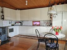 Huoneet: 3h + k + kph + wc + vh + terassi + erillinen rantasauna, aitta ja talousrakennus. Ja tottakai leikkimökki