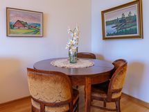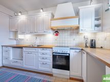 - Siistikuntoinen, ajaton vaalea keittiö. Varusteina jääkaappi-pakastin, liesi, tuuletin ja astianpesukone. Laattakuvioinen laminaattilattia. Ruokailutila: Keittiössä tilaa ruokailuryhmälle.