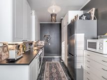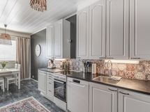 - Jääkaappi/pakastin 2021, keraaminen liesi 2021, astianpesukone 2021. Keittiön kaappien rungot osittain uusittu ja ovet maalattu v. 2021. Samalla uusittu tasot, allas ja hana.