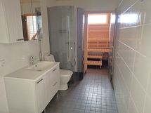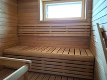 - Varusteet: sähkökiuas, LED-valaistus, ikkuna ulos. Saunan lauteet. Seinämateriaali: kaakeliseinä. Lattiamateriaali: laattalattia