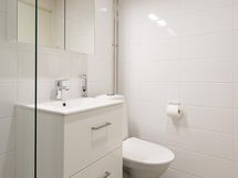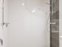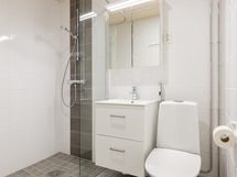 - Kylpyhuone, suihku, suihkuseinä, peilikaappi, allaskaappi, pesukoneliitäntä, lattialämmitys, kiinteät valaisimet. Remontoitu 2025