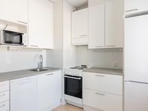 - Jääkaappipakastin, lattialiesi, liesituuletin, mikroaaltouuni, astianpesukone, kaapistot, kiinteät valaisimet. Uusittu 2025