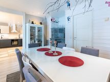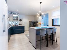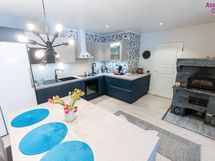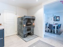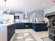 - Liesi: leivinuuni, erillisuuni, liesitaso. Kylmäsäilytys: jääkaappi, pakastin. Varustus: mikroaaltouuni, astianpesukone, kiinteät valaisimet. Keittiö remontoitu vuonna 2022. Koko keittiö ja kodinkoneet uusittu (lukuun ottamatta jääkaappi ja pakastin, jotka uusittu 2017). Keittiö yhdistyy takkahuoneeseen, josta tehty ruokailutila