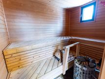 - Kuvaus: Lattia laatta, seinät paneeli, pilarikiuas (sähkö), ikkuna ulos. Saunan paneelit ja lauteet uusittu vuonna 2007. Kiuas uusittu vuonna 2015.
