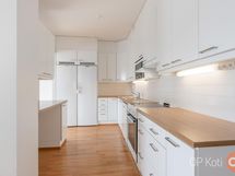 - Jääkaappi pitkä, pakastekaappi pitkä, keraaminen liesi 2020-luvulla uusittu, liesituuletin, astianpesukone, kaapistot, kiinteät valaisimet.