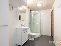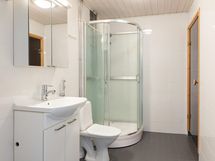 - Sauna, sähkökiuas, kylpyhuone, erillinen wc 2x wc, suihku, suihkukaappi, peilikaappi, allaskaappi, pesukoneliitäntä, lattialämmitys pesuhuone, kiinteät valaisimet.
