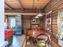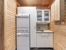 - Jääkaappi/pakastin, leivinuuni, kaasuliesi, puuliesi, kiertoilmauuni, mikroaaltouuni, astianpesukone, kaapistot, liesituuletin hormiin, kiinteät valaisimet