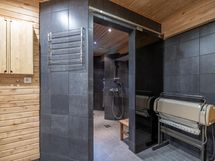 - Erillinen wc (Alakerta): wc-istuin, peili, lavuaari (tason päällä), bidee, lattialämmityus. Yläkerran wc: wc-istuin, bidee, laatikosto, lattialämmitys, peili. Kylpyhuone: pyykkitorni, taso, allas, kaapisto, 2kpl suhkuja, saunassa hetivalmis- kiuas, lattialämmitys, kiinteät valaisimet